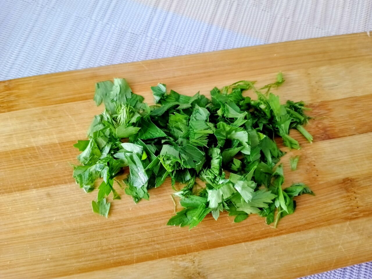 - Clatiti patrunjelul si eliminati excesul de apa, apoi tocati-l.