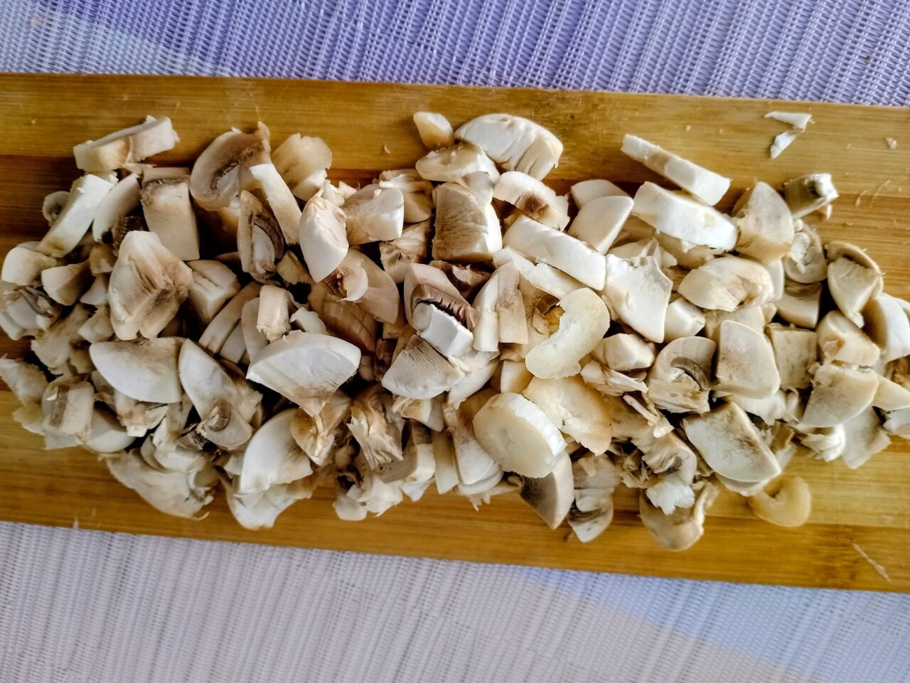 - Clatiti ciupercile, uscati-le si taiati-le in felii mici.