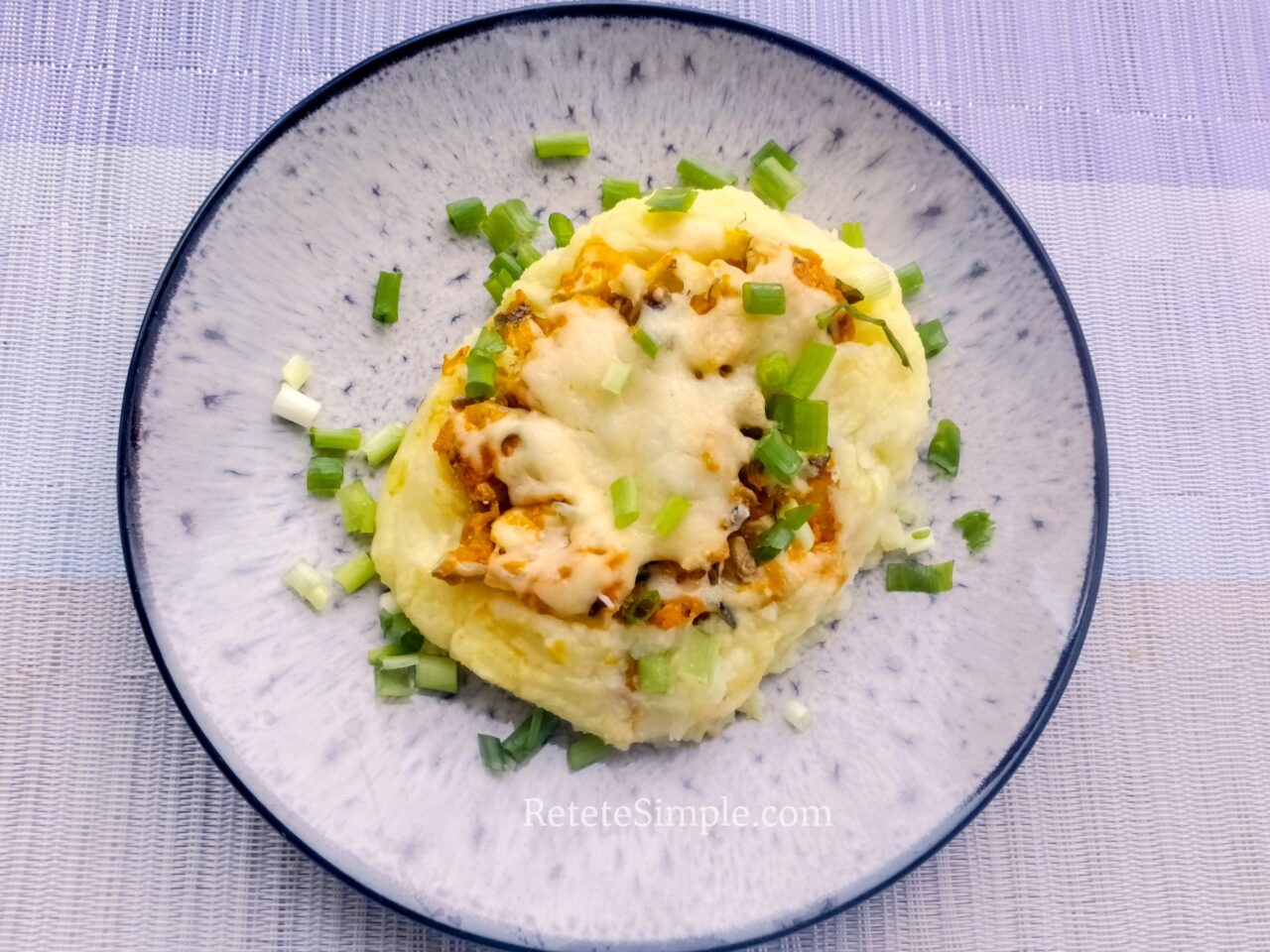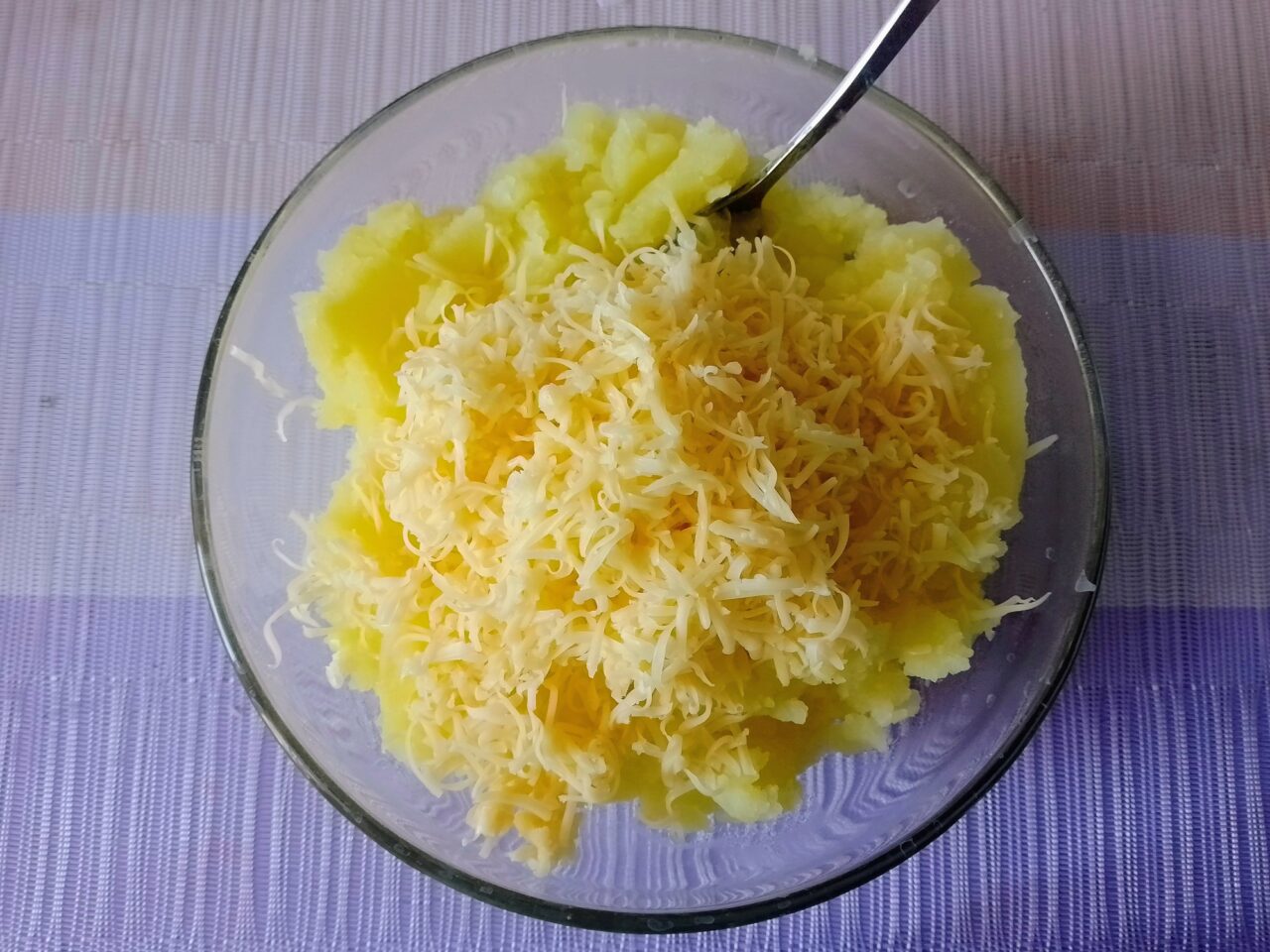 - Fierbeti cartofii pana sunt gata si zdrobiti-i pana devin piure. Adaugati 2/3 din cascavalul ras in piureul gata preparat, apoi amestecati bine.