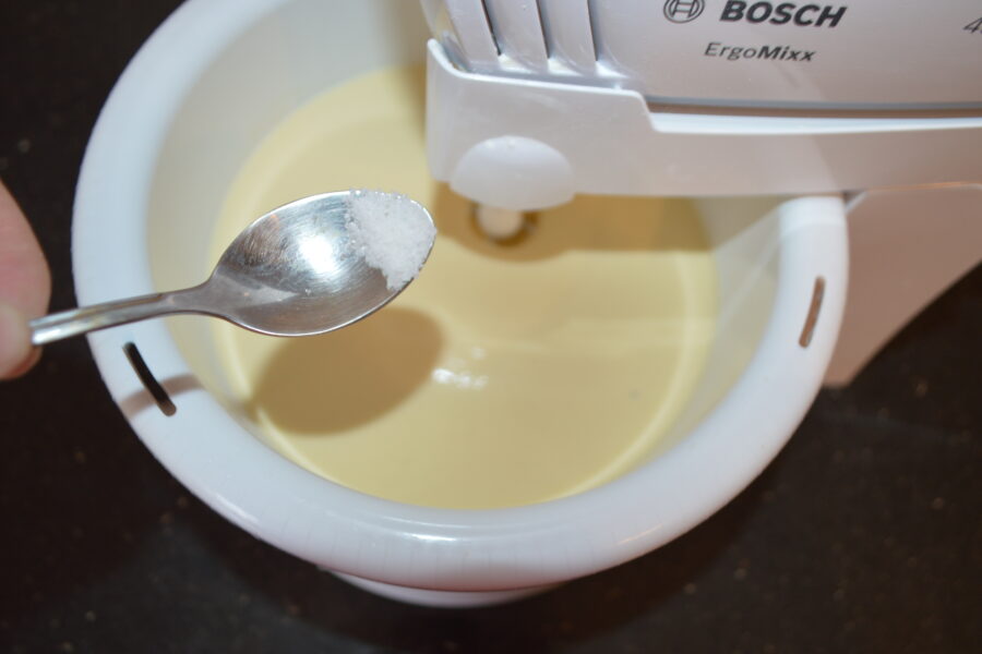 - Crema: adaugati zaharul pudra in smantana si bateti cu mixerul 12-15 minute pina se intareste.