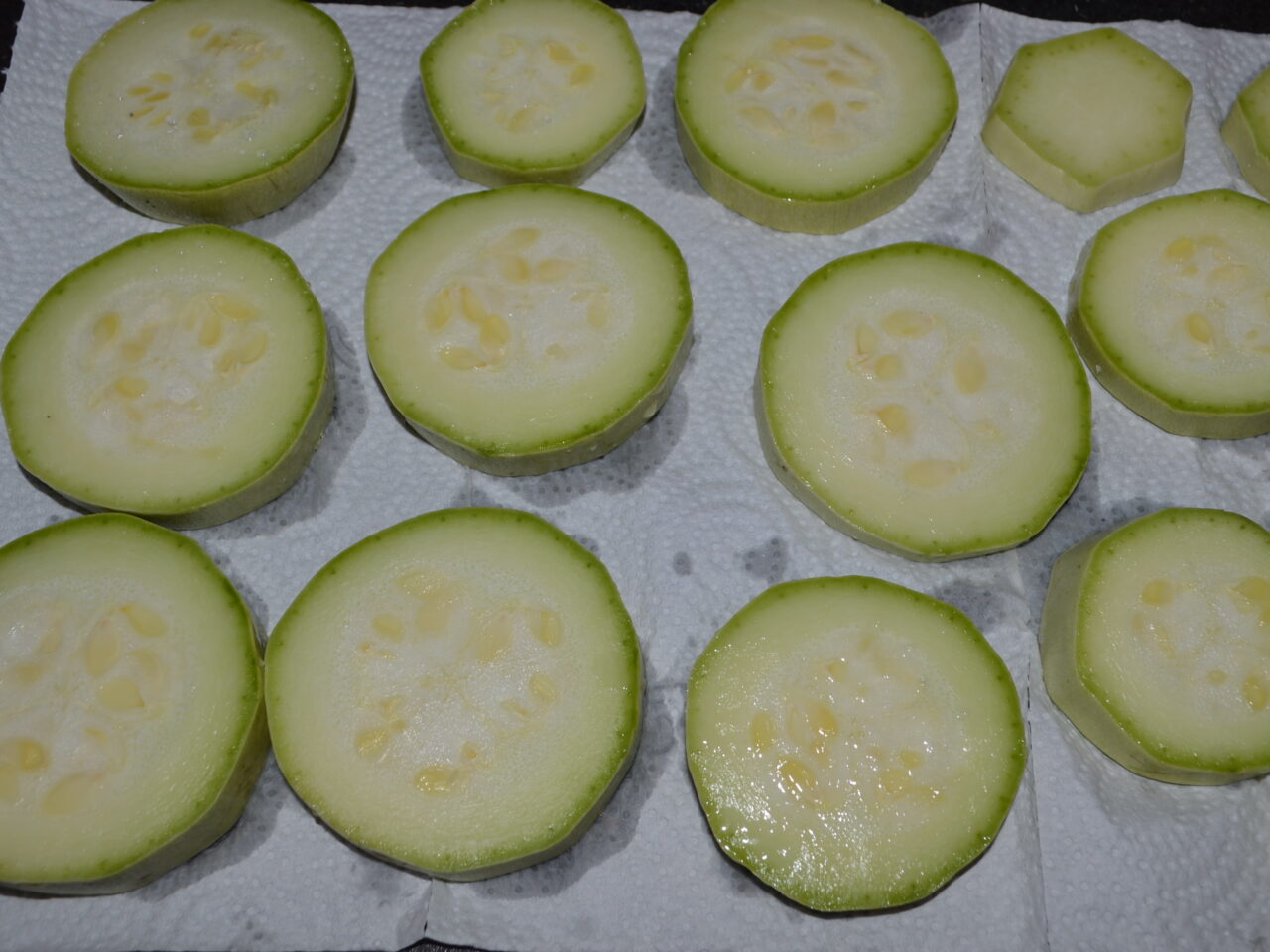 - Dupa ce a trecut timpul stabilit, clatiti cu apa rece dovleceii, apoi ii puneti pe un servet de hartie ca sa absoarba apa. Puneti un servet si deasupra dovleceilor pentru cateva secunde.
