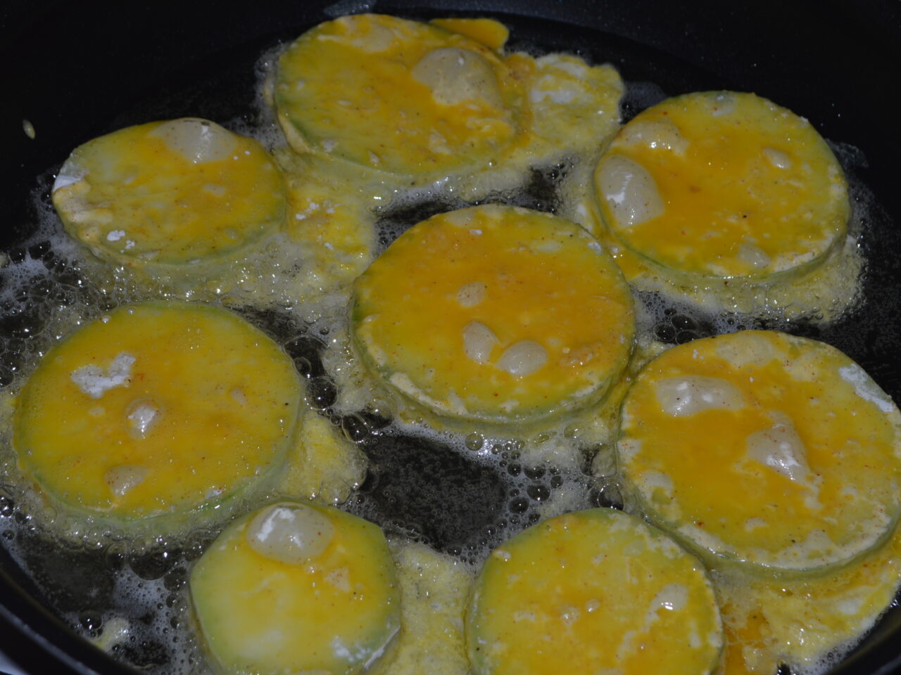 - Incingeti o tigaie cu ulei, si prajiti dovleceii la foc mic. Cateva minute pe o parte, si cateva minute pe cealalta parte.