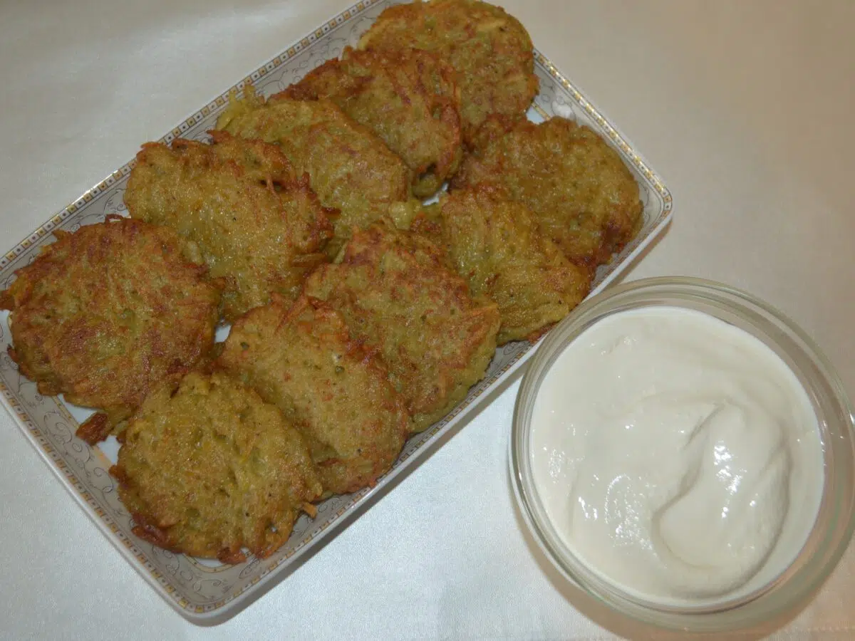 Draniki cu cartofi sunt gata, puteti servi cu smantana. Pofta buna!