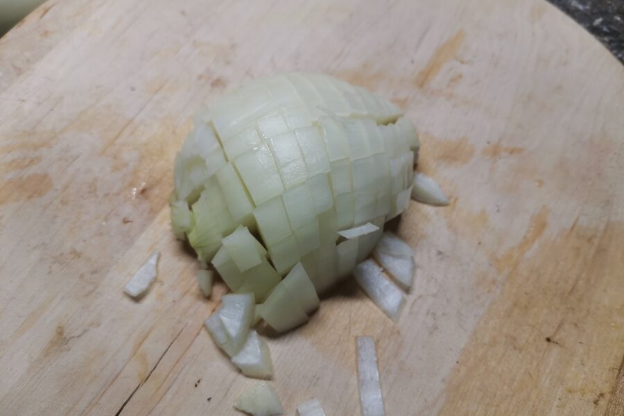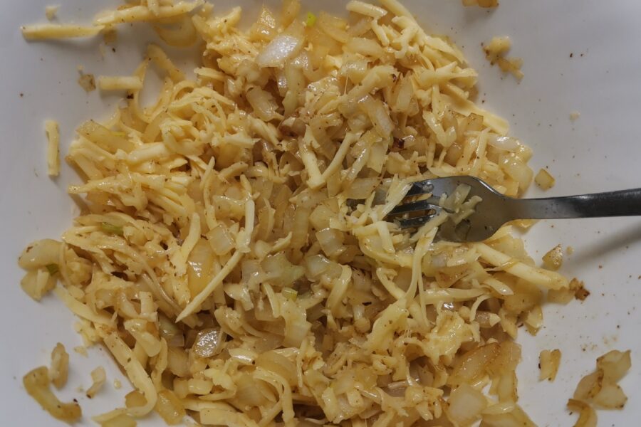 - Grate cheese on a coarse grater, and mix it with onion and garlic.