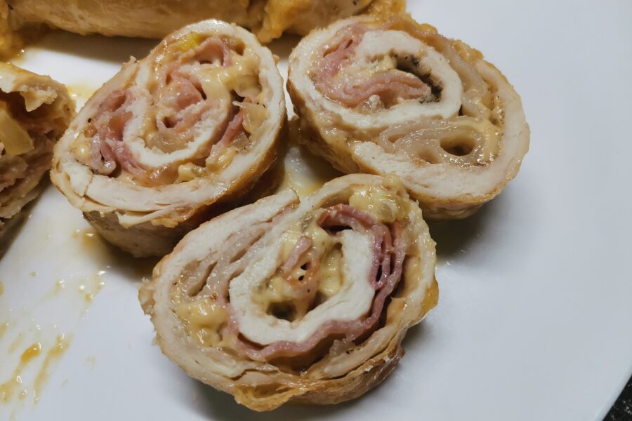 Imagine tender chicken breast, pounded thin, rolled around a gooey mixture of shredded cheese, sautéed onion, and garlic—and then wrapped snugly in bacon. This chicken roll with bacon and cheese is simple yet elegant. After a quick sear to crisp the bacon, it bakes in the oven until juicy and flavorful. The melted cheese inside meets a satisfying crunch from the bacon exterior—a match made in culinary heaven.