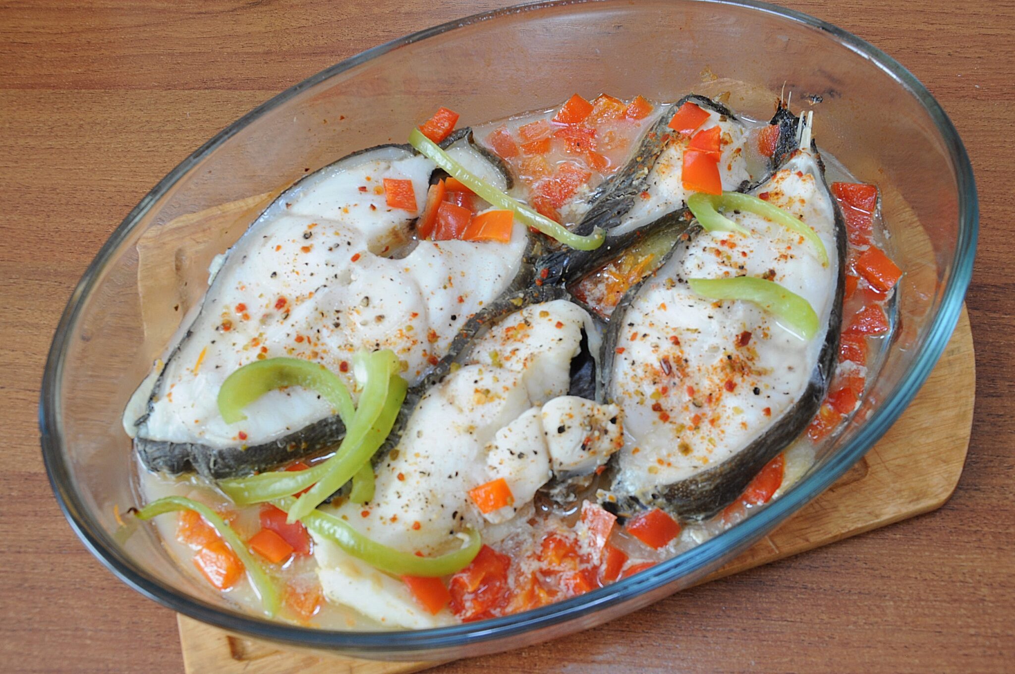 Baked catfish with vegetables is a tasty and balanced recipe, ideal for those who want to eat healthily at home. Vegetables such as onions, carrots, and peppers form the basis of a flavorful bed on which the fish is placed—baked together at 180 °C until the fish is tender and the vegetables are lightly caramelized. It’s no big secret that fish should be a staple in your diet and that it’s even better to eat it more often than meat. Catfish is a fish from the northern seas, so it’s rich in all kinds of vitamins, micro and macro elements. Its meat is very tender, tasty, and fatty. These advantages make the fish somewhat difficult to prepare.