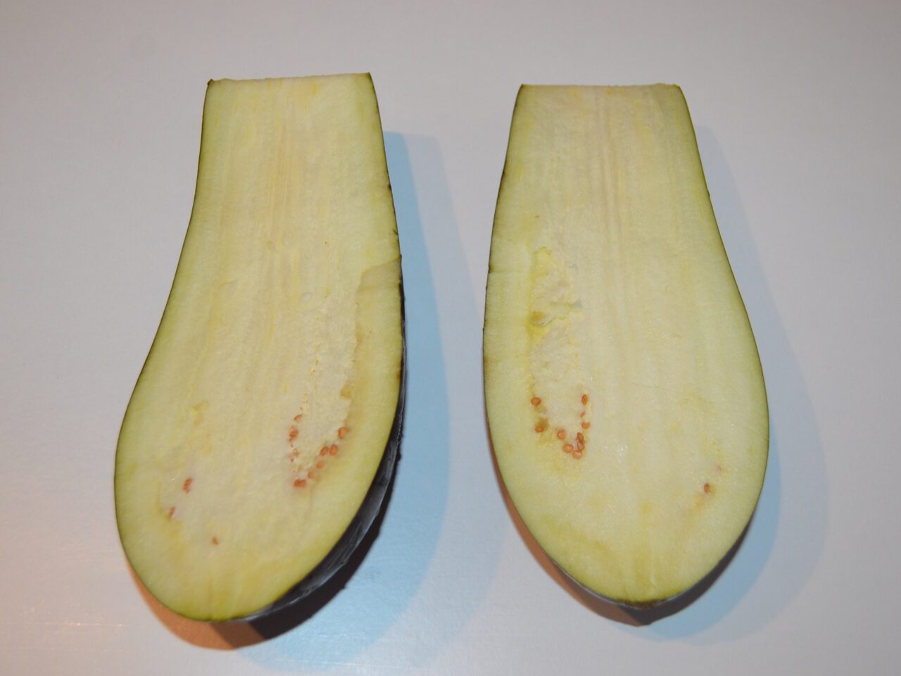 - Wash the eggplant and cut it in half.