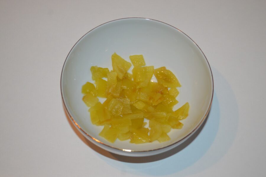 - For the filling, first finely chop the roasted pepper, removing the skin and seeds.