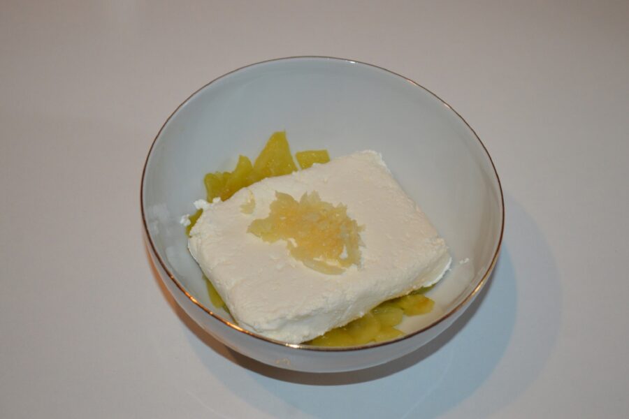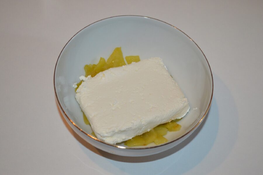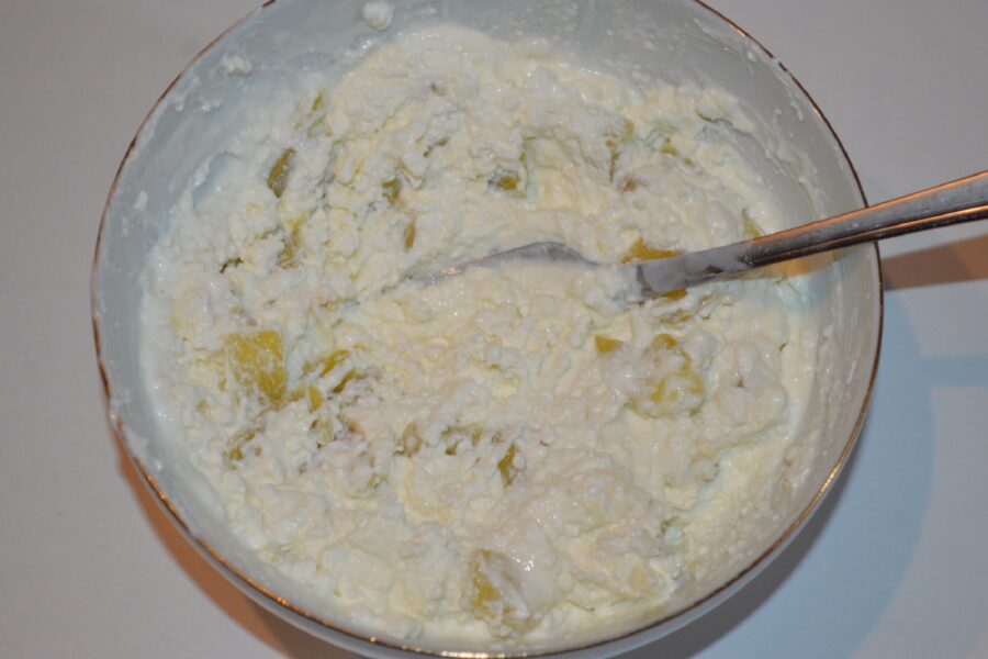 - Add cottage cheese to the peppers; I used 5% fat cheese.