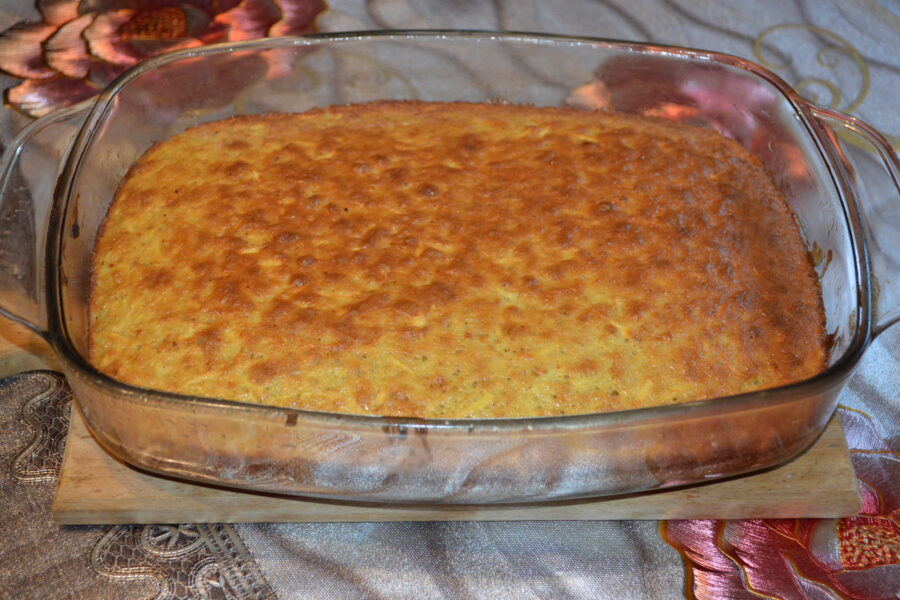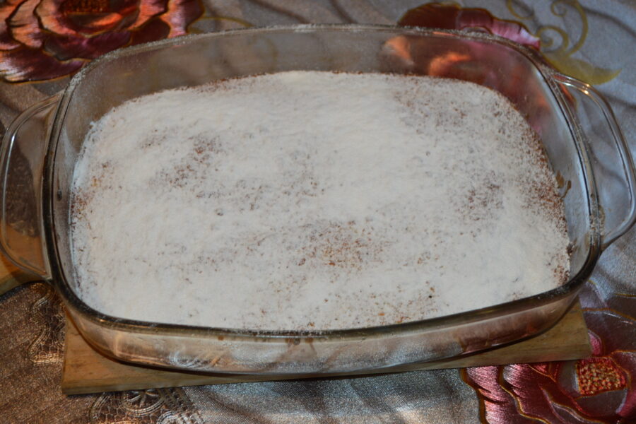 - If you wish, you can sprinkle powdered sugar on the baked cake.