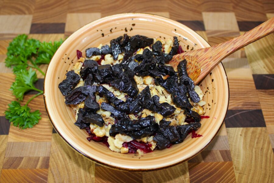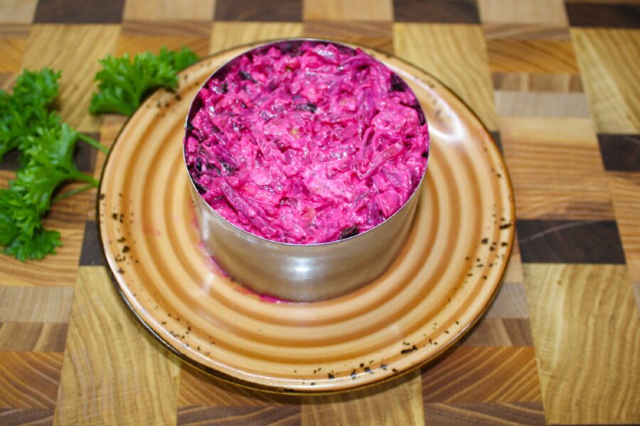 This beetroot salad marries sweet, earthy flavors with a satisfying crunch—perfect for both casual meals and festive gatherings. Tender boiled beets are shredded and mixed with juicy prunes, toasted walnuts, a hint of garlic, and a creamy mayonnaise-based dressing (which you can lighten with sour cream). It’s a straightforward recipe but delivers a rich depth of taste—giant flavor from humble ingredients.