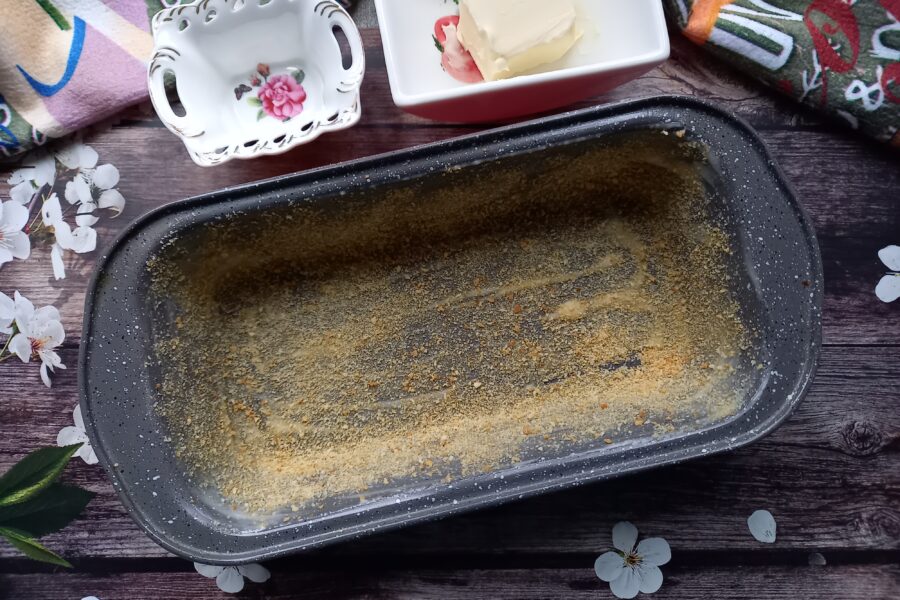 - Grease a baking pan (metal, glass, or silicone) with a little butter and sprinkle with breadcrumbs.