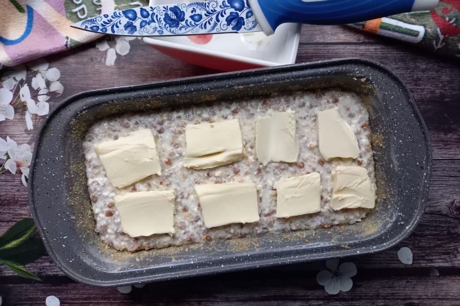- Remove the buckwheat pudding from the oven and let it cool slightly, leaving it on the table.