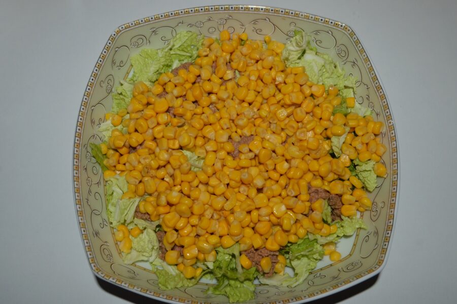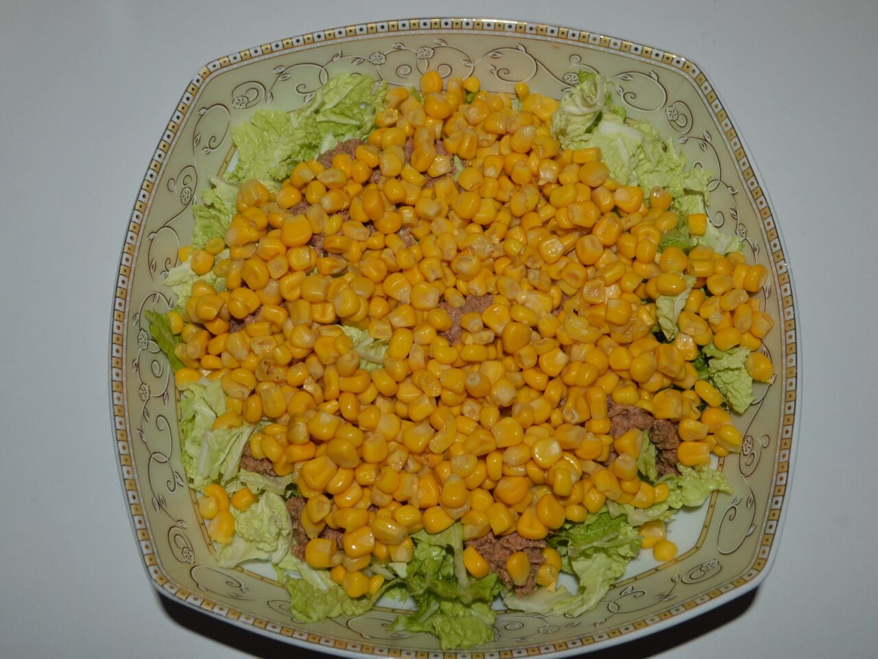 - Drain the canned corn, rinse it with clean water, then drain it again. Add the corn to the bowl.