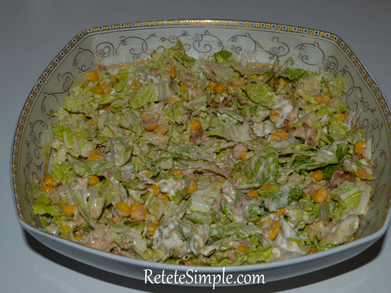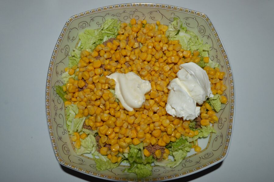 Here’s a salad that delivers crisp freshness and satisfying protein in every bite: Cabbage Salad with Tuna & Corn. Thinly shredded cabbage forms a crunchy base, complemented by tender tuna and sweet bursts of corn. A light mix of mayonnaise and sour cream brings creaminess without overwhelming the crisp vegetables.