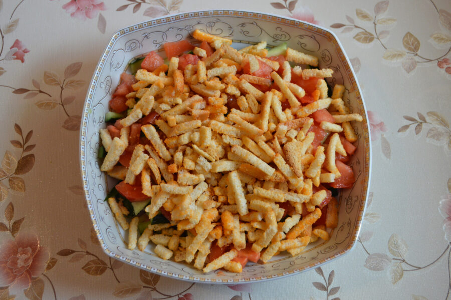 When you want something crunchy, creamy, and fresh without heating up the kitchen, this Croutons, Cheese & Cucumber Salad fits the bill. Imagine crisp cucumber sticks and juicy tomato cubes mingled with salty cheese slices, topped with golden croutons for crunch. A touch of mayonnaise binds it all together, creating a balanced bite of textures: creamy, fresh, crispy. It’s fast to make, vibrant in color, and satisfying—ideal for a light lunch, quick dinner, or as an appetizer at a gathering. Sometimes, simplicity tastes best.
