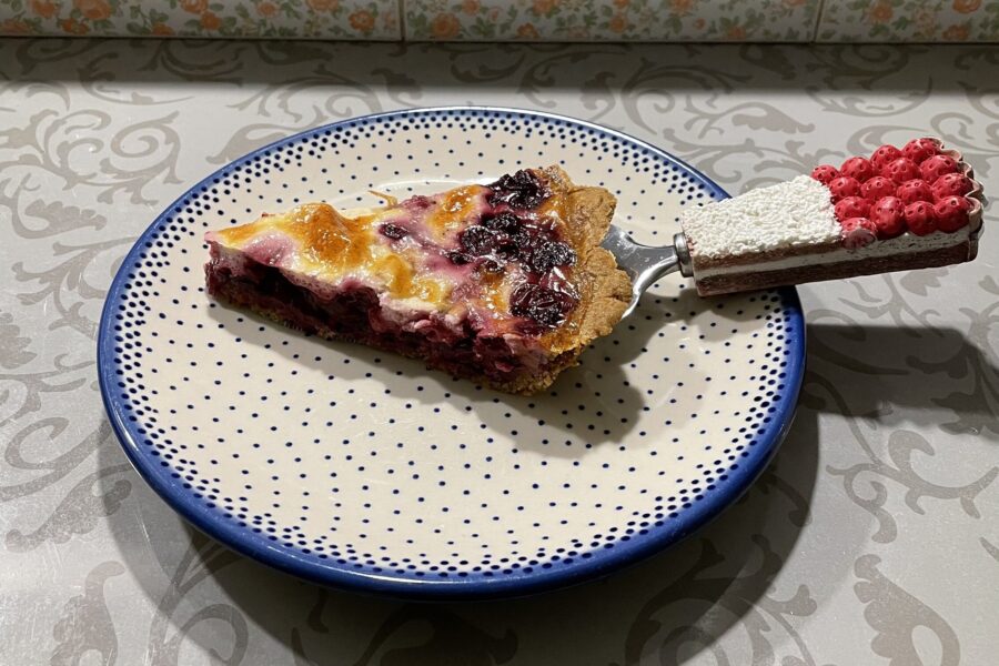 Cherries and dark chocolate are made for each other. Instead of white flour, a mixture of rye and oat flour is used. The sweetness of the dessert does not come from sugar, but from its natural alternative—stevia. This cherry pie has every right to be called a healthy diet product. Suitable for diabetics.