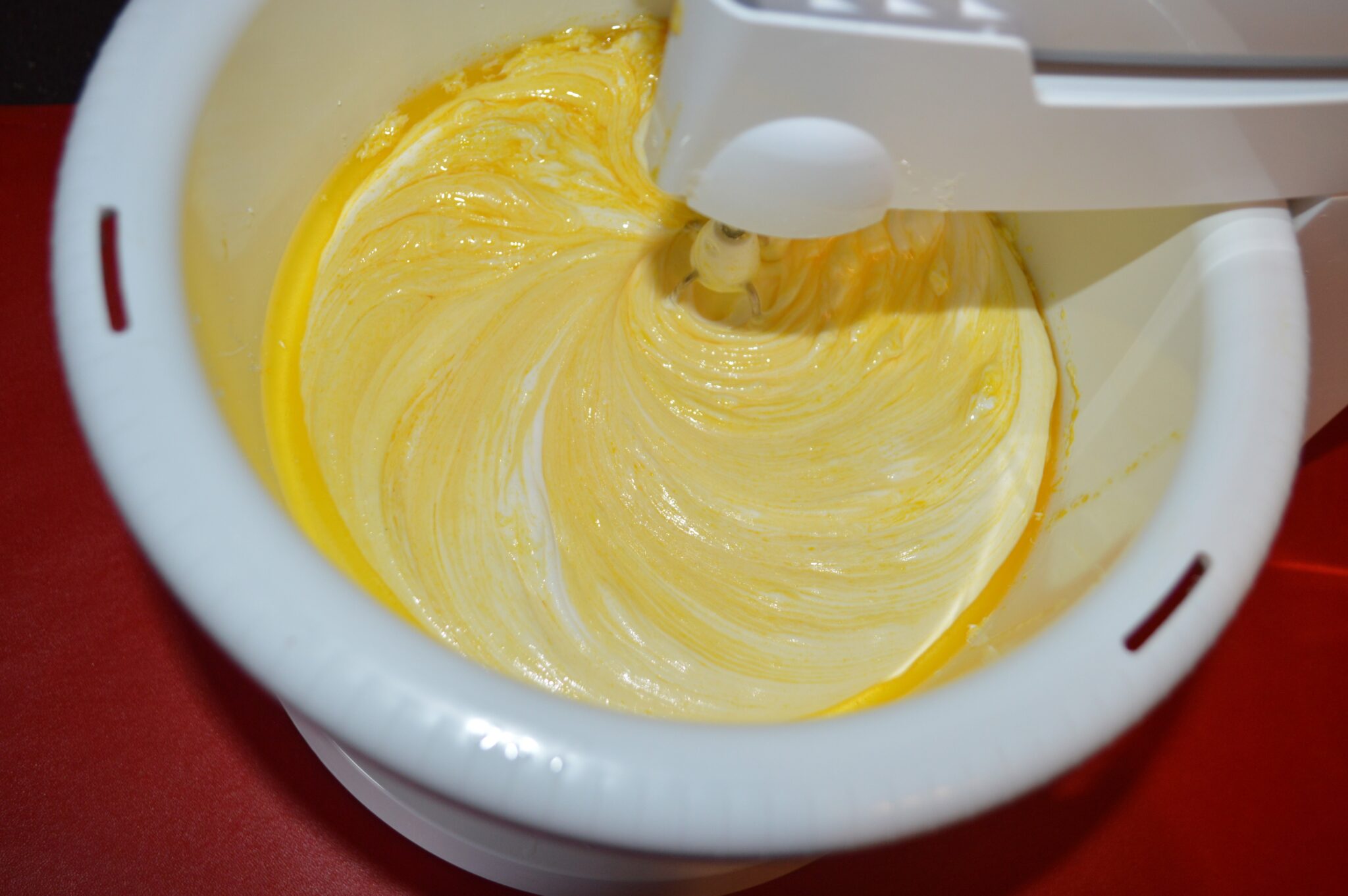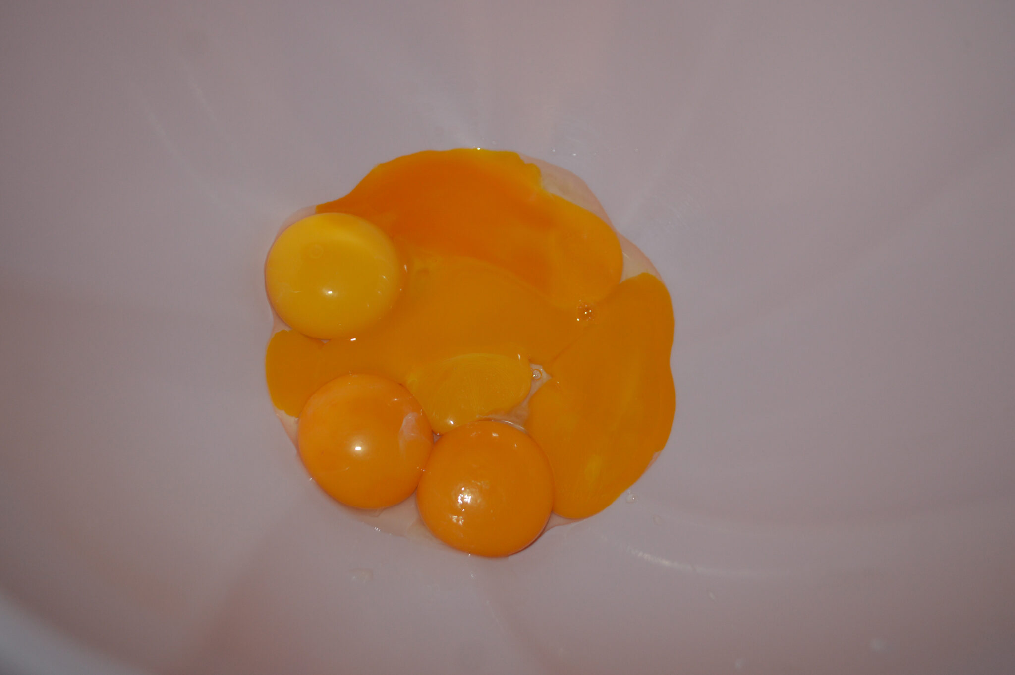 - Add oil to egg yolks, and mix with a whisk until smooth.