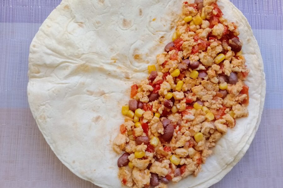 Tortillas stuffed with minced meat and legumes are perfect for breakfast. They are rich in healthy proteins and easy to digest. The combination of ingredients makes them juicy, and the taste is identical to that of the famous Mexican dish.