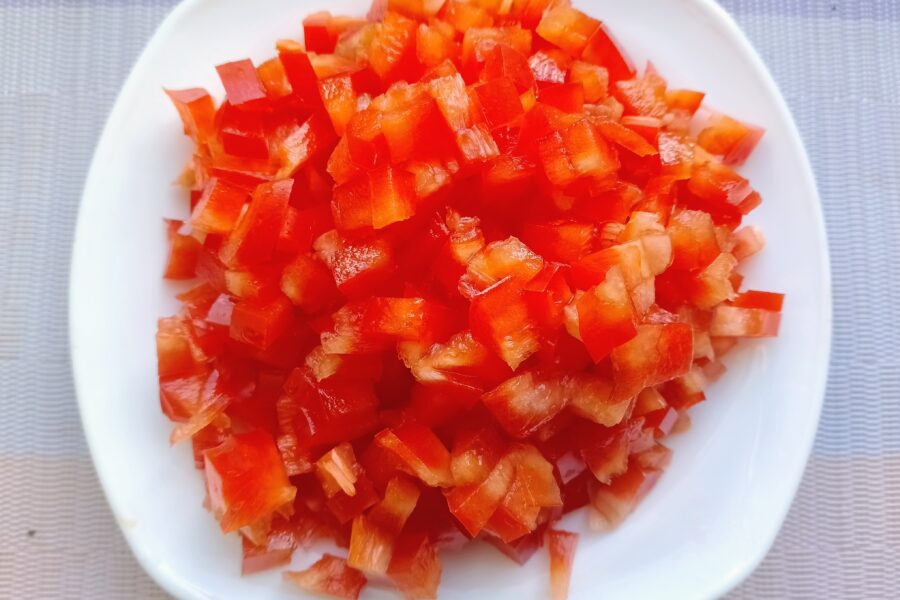 - Add the chopped pepper to the minced meat and mix the ingredients.