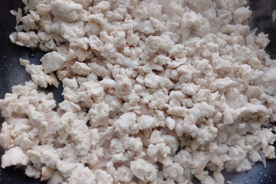 - Cook for about 10 more minutes, stirring the ingredients periodically. Then, let the minced meat cool and divide it into three parts.
