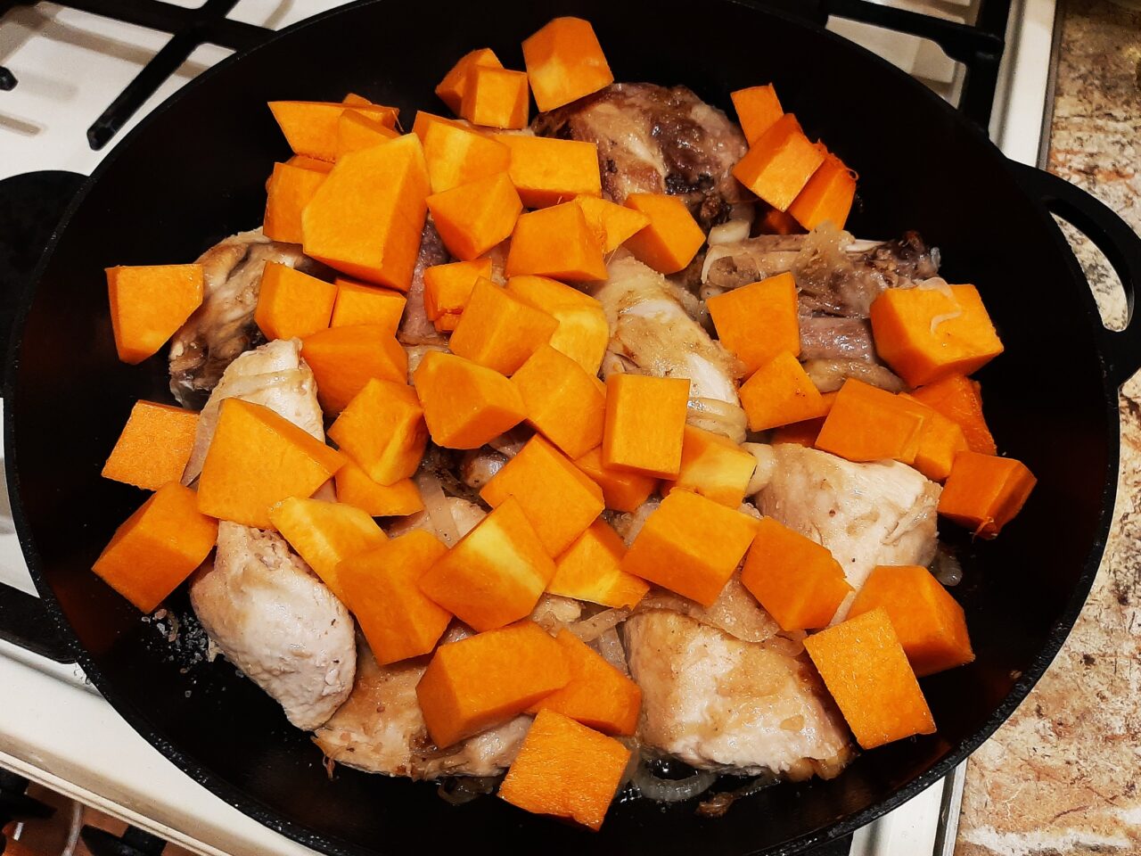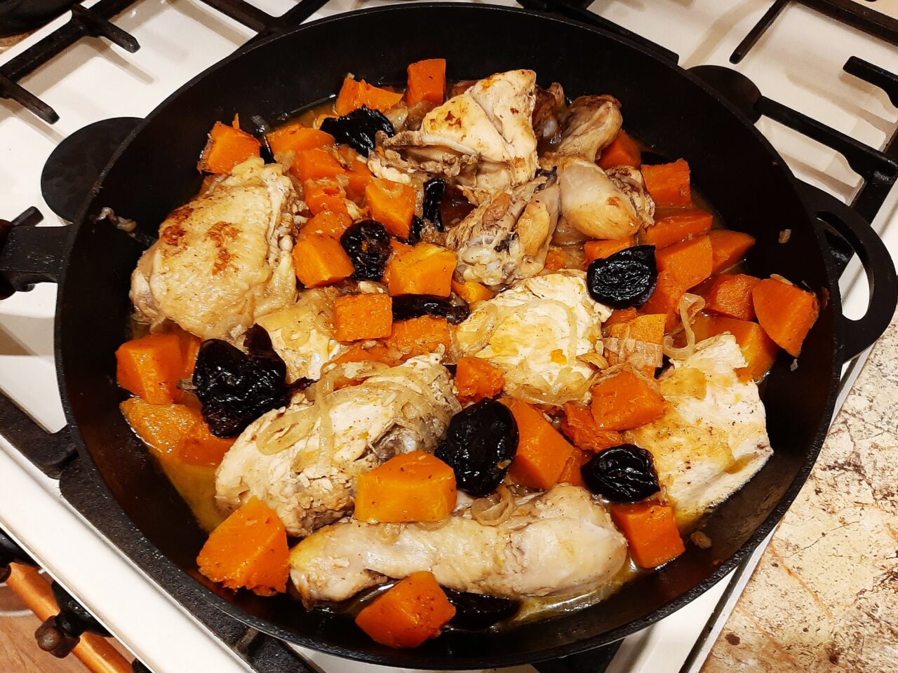 Warm, comforting, and slightly unexpected—Chicken with Pumpkin & Dried Plums is a dish that brings together sweetness and savory in one welcoming bowl. Imagine tender chicken pieces mingled with soft pumpkin cubes, enriched by the gentle tang of dried plums and lifted by a faint trail of cinnamon. It’s the kind of meal that turns an ordinary evening into something special without needing fancy ingredients.