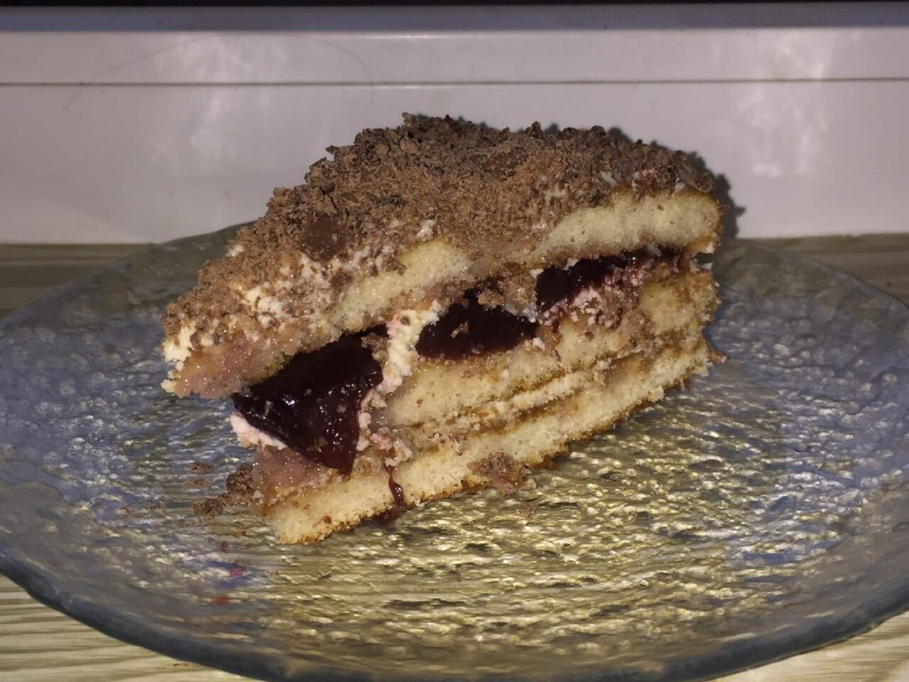 - Before spreading the first layer, soak it with juice from the compote. This will make the cake moister.