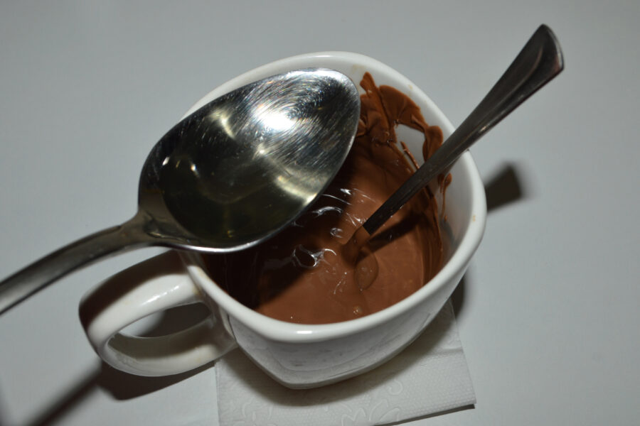 - Pour the melted chocolate into a cup and add the oil. Stir.