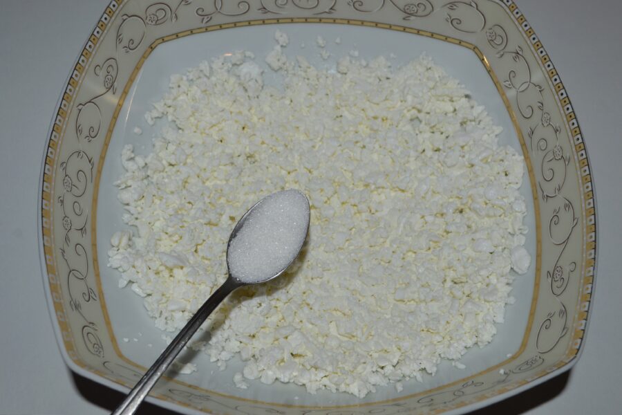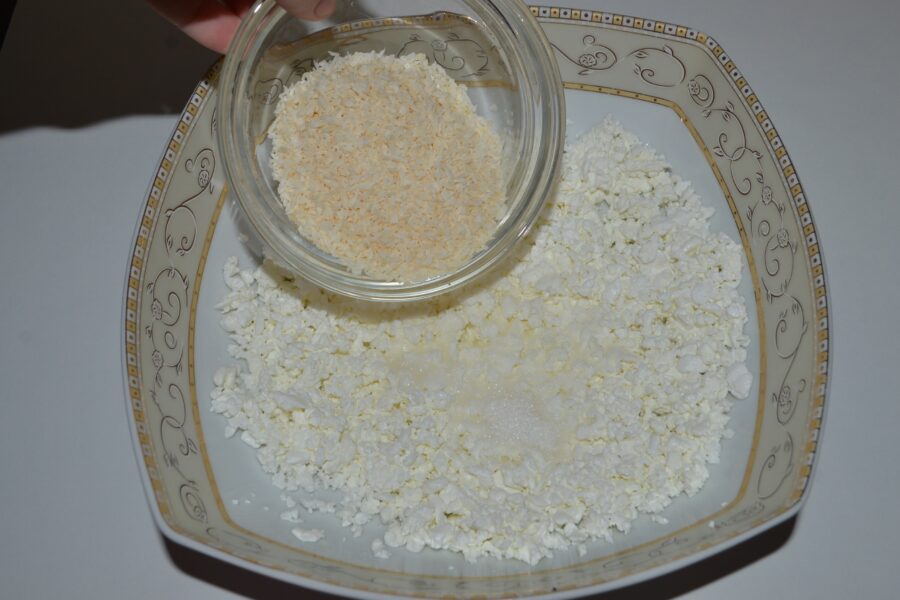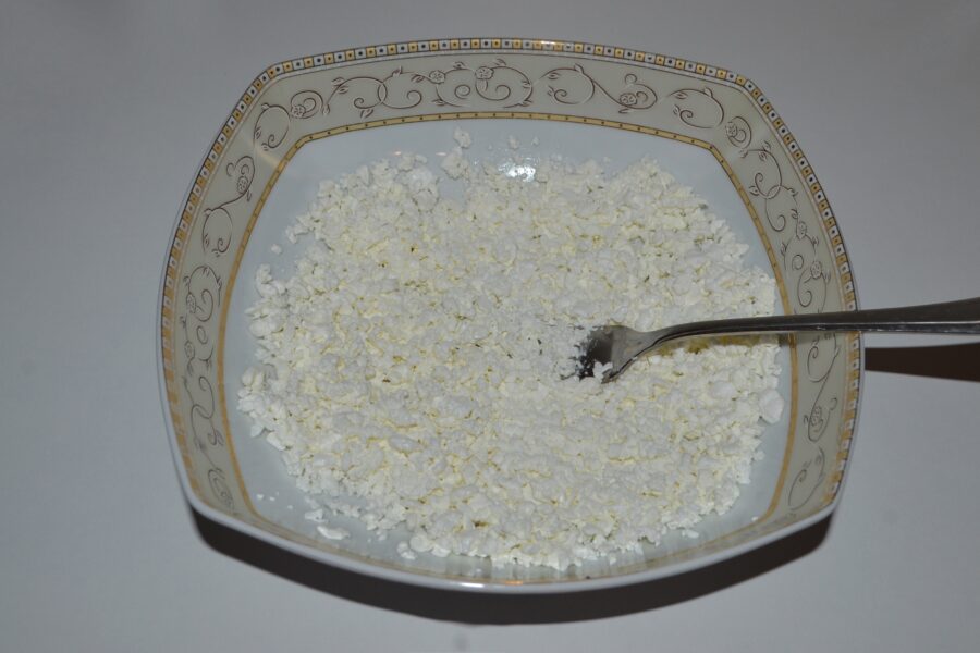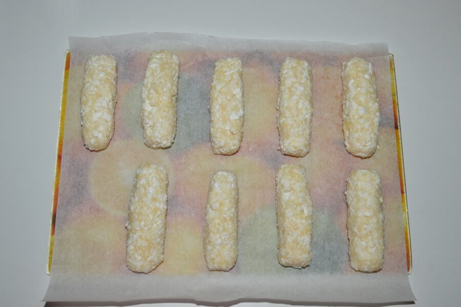 Use a cottage cheese with a fat content of 5% or higher, but never less than 5%, otherwise it will be difficult to shape the cheese sticks and they will fall apart.