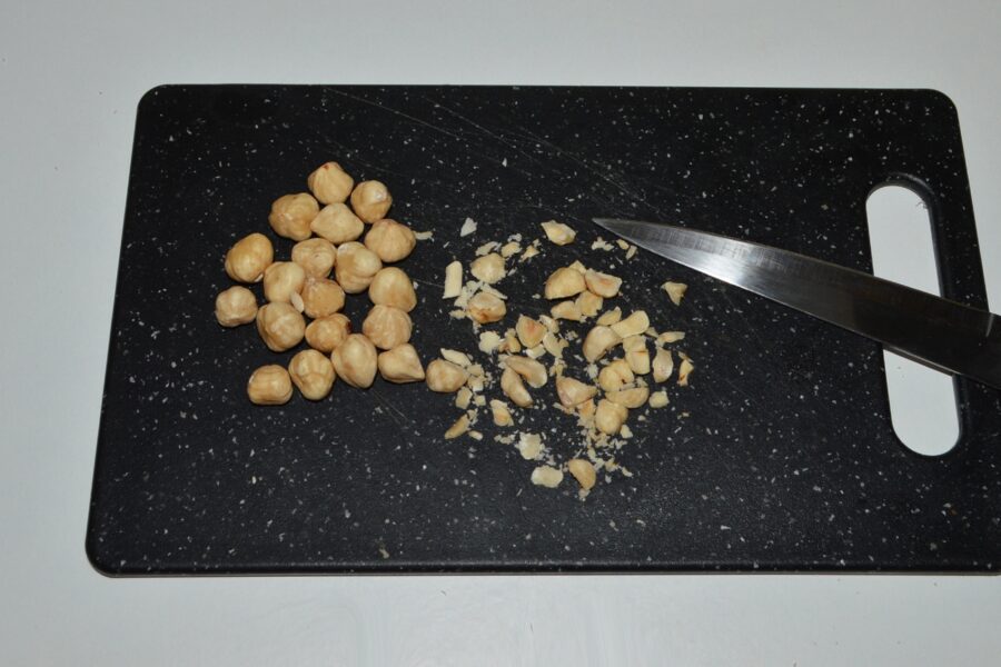 - Meanwhile, prepare the glaze: finely chop the nuts (I used hazelnuts, but you can use whatever you like).