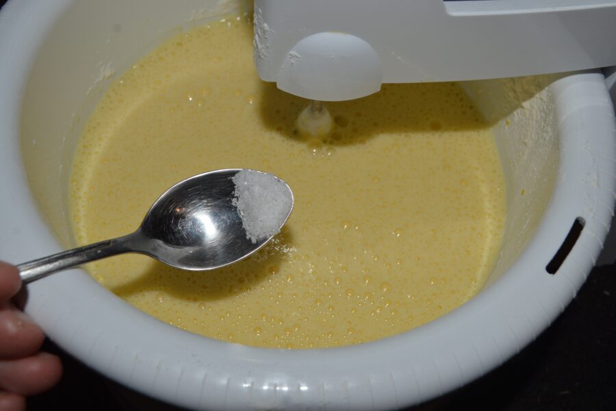 - Break the eggs into a large bowl and beat them with a mixer on medium speed.