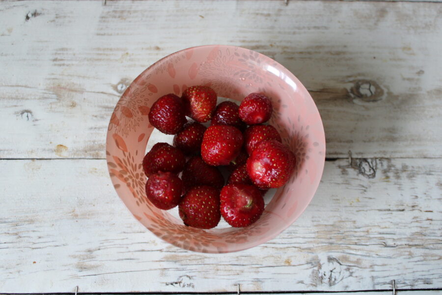 - Remove the stems from the strawberries and wash them with water. If fresh fruit is not available, frozen fruit can be used. However, in this case, they must be left to thaw and excess moisture must be removed, otherwise the filling will become liquid and will not bake, and the dough will become soggy. The strawberries can also be rolled in flour to absorb the juice they release.