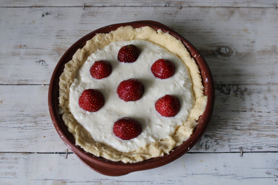 - Roll out the dough in the mold; you don’t need to use a rolling pin, you can do it with your hands. The dough is soft and malleable. Form the edges at the base so that the cheese filling doesn’t leak out when heated.