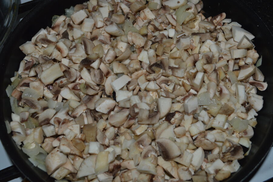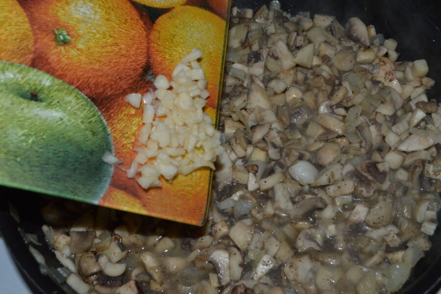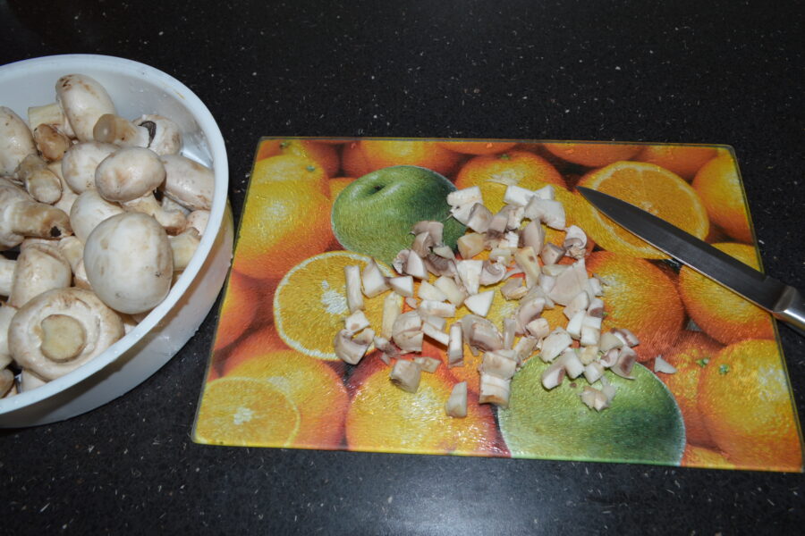 - Rinse and finely chop the mushrooms.