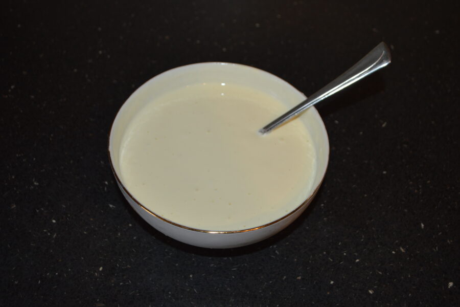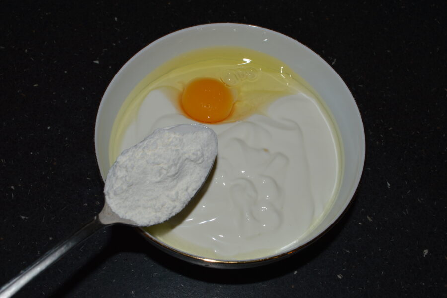 - Add the cream, egg, a little salt, and a tablespoon of flour to a bowl.