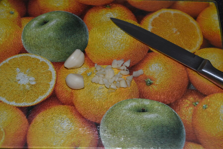- Finely chop the garlic cloves.
