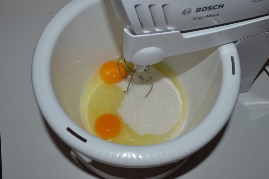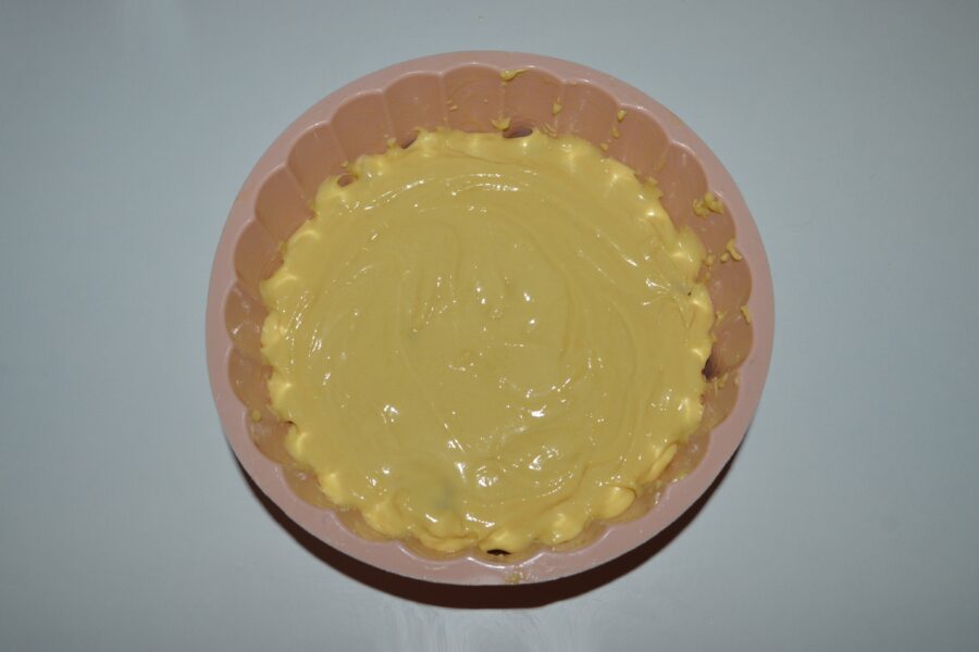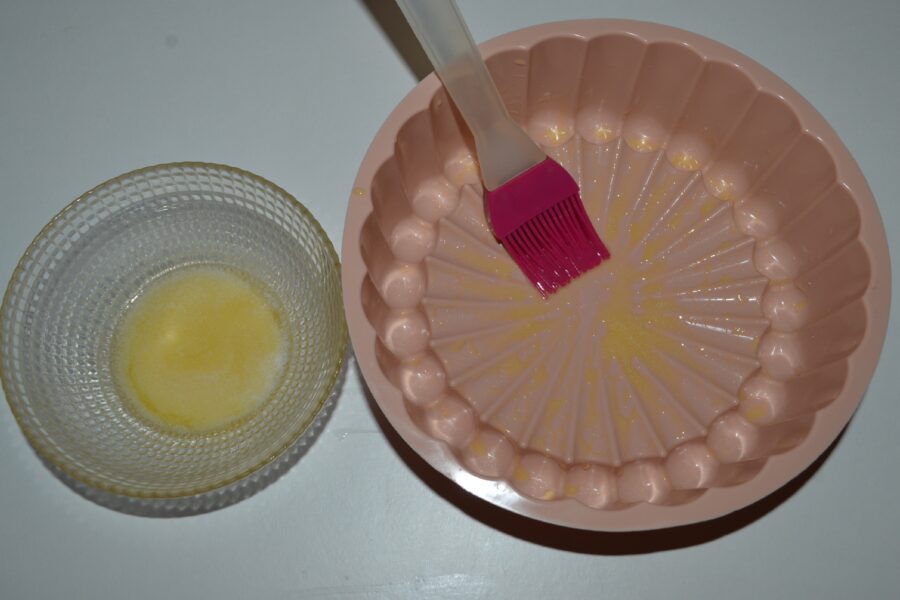 - Melt a little butter in the microwave and grease the baking mold with a pastry brush. I used a pan with a diameter of 20 cm.