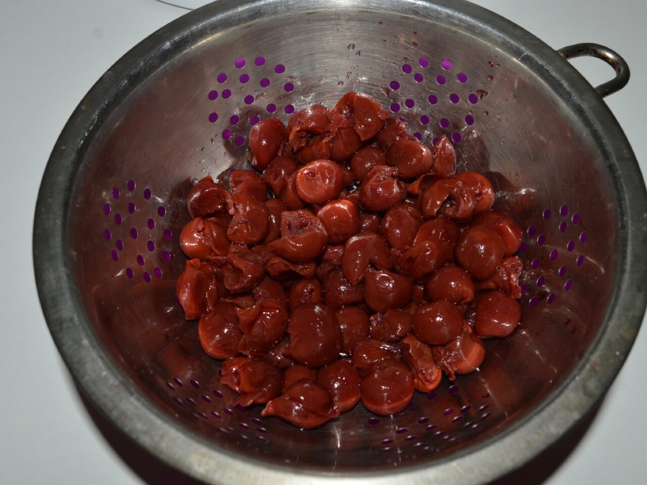 - I used cherries from a jar. Drain the juice in a strainer. If you have fresh cherries, use them.