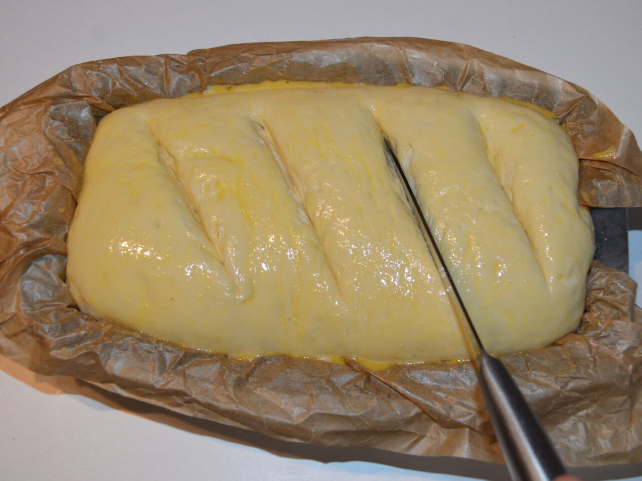 - Place the bread on a loaf pan lined with parchment paper and cover with a towel. Let rise for another 20 minutes.