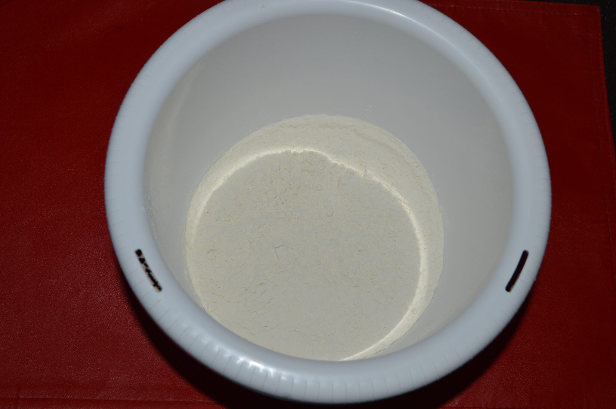 - Pour the flour into a deep bowl.