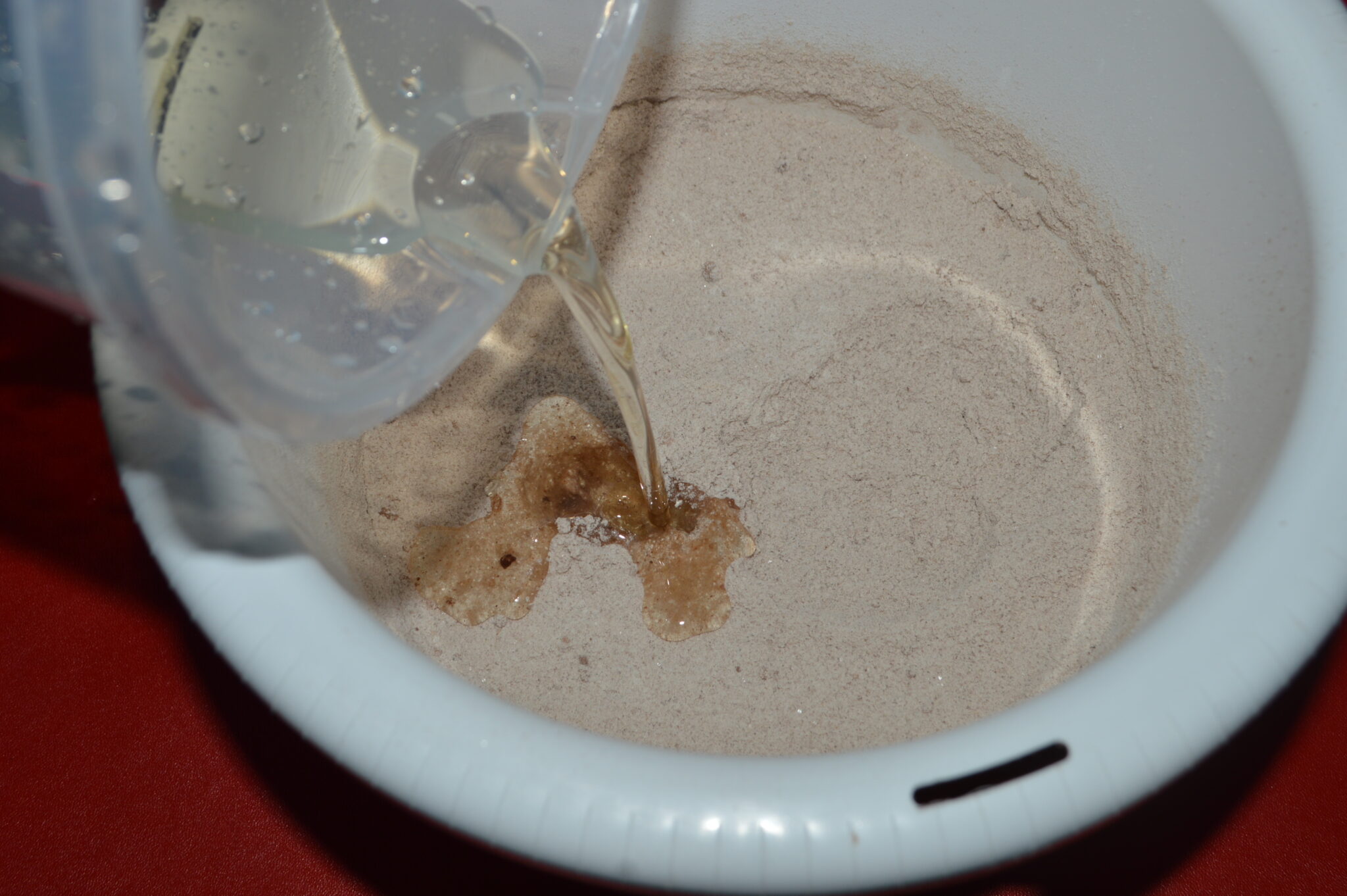 - Pour in the oil.