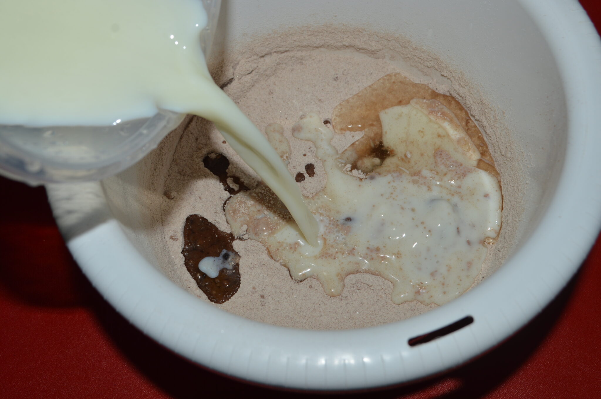 - Pour in the milk.
