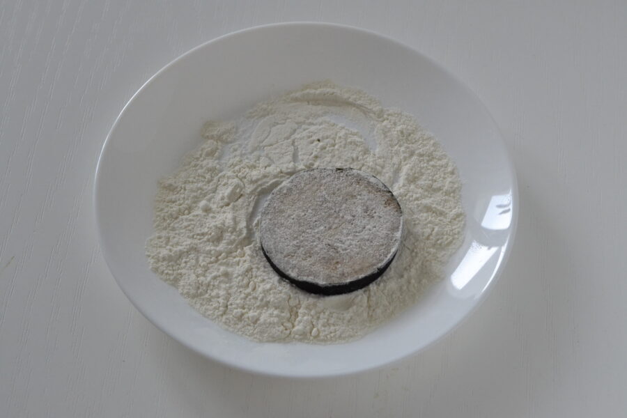 - Cut the eggplants into circles about 0.7 cm thick. You can use sliced and frozen ones from the fall.