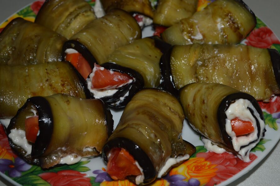 Eggplant rolls with tomato and garlic are a light and flavorful appetizer inspired by Mediterranean cuisine. Imagine silky, thin slices of fried eggplant layered with a vibrant combination of garlic mayonnaise and a slice of fresh tomato, then rolled and chilled until ready to serve. Each bite delivers a creamy, savory punch followed by a burst of juicy tomato—perfect for festive gatherings or as an intriguing starter.