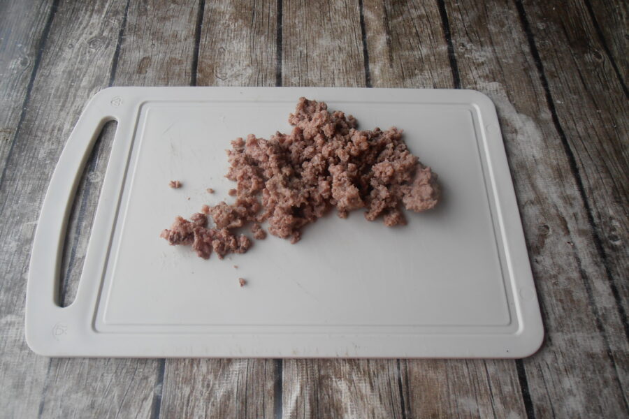 - Add the beef to the eggs. Beat the mixture until you have a smooth batter with no lumps.