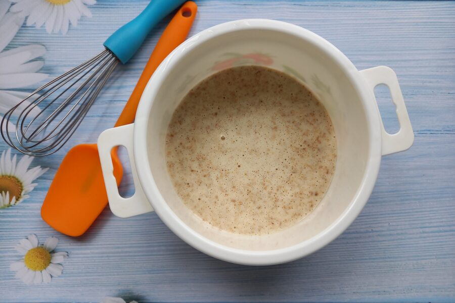- Add the oat flour with the fiber and baking powder to the resulting mixture. Then pour in the vegetable oil.