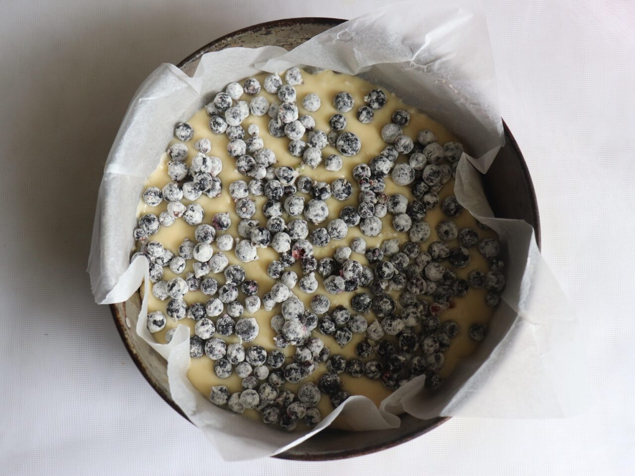 - Then add 400 g of berries. Spread the berries evenly over the dough.
