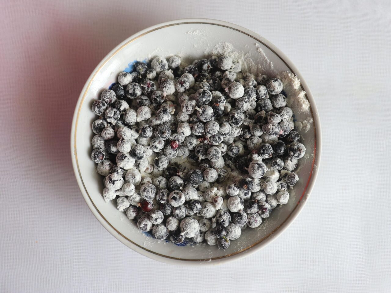 - Next, prepare the berries. To do this, sprinkle the currants with a little flour. Gently mix the berries. The flour will prevent the berries from releasing excess juice and will also help the berries spread evenly over the dough.