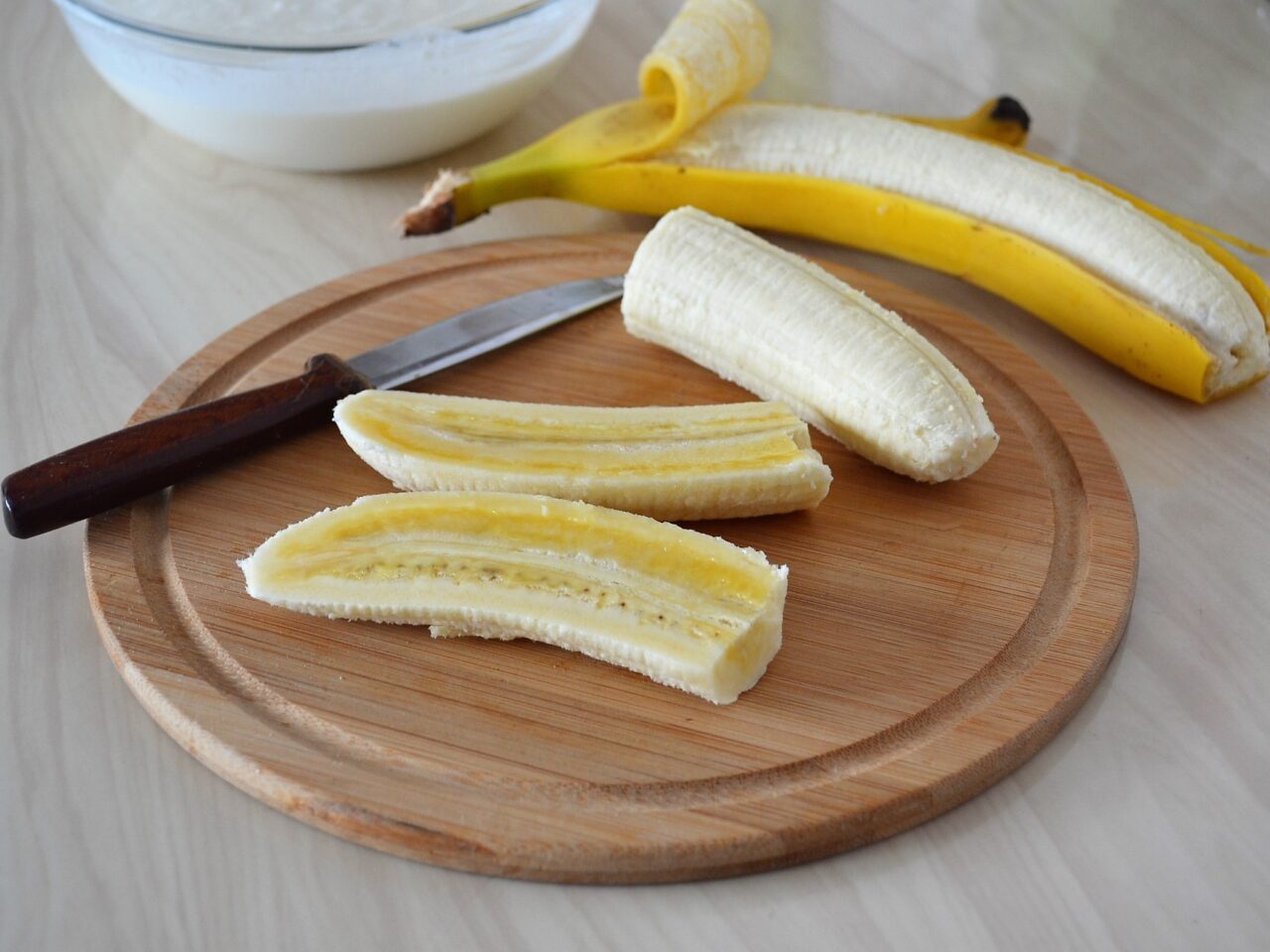 - Peel the banana, then cut it in half lengthwise and crosswise.