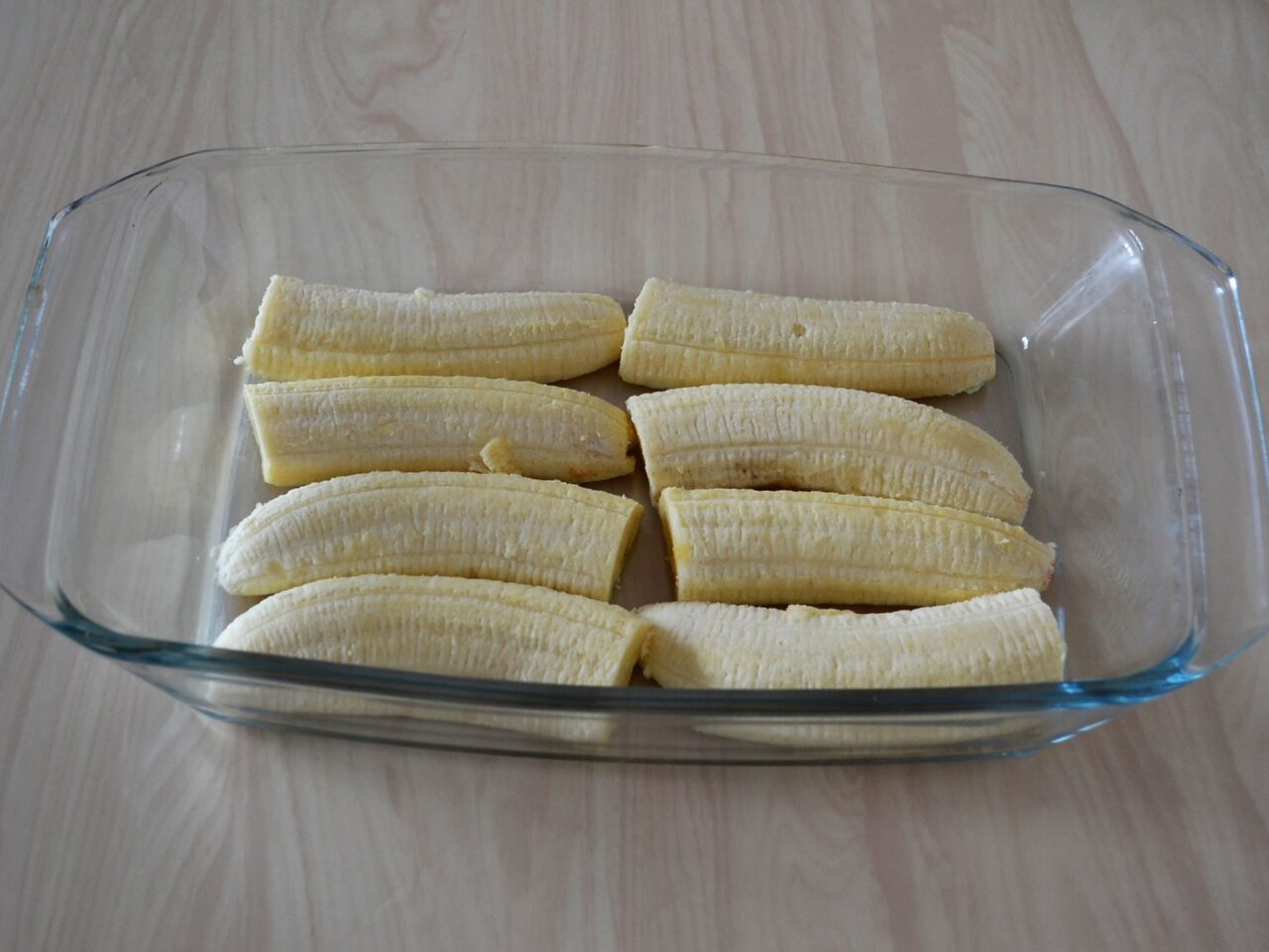 - Spread the liquid mixture evenly over the entire surface of the bananas.